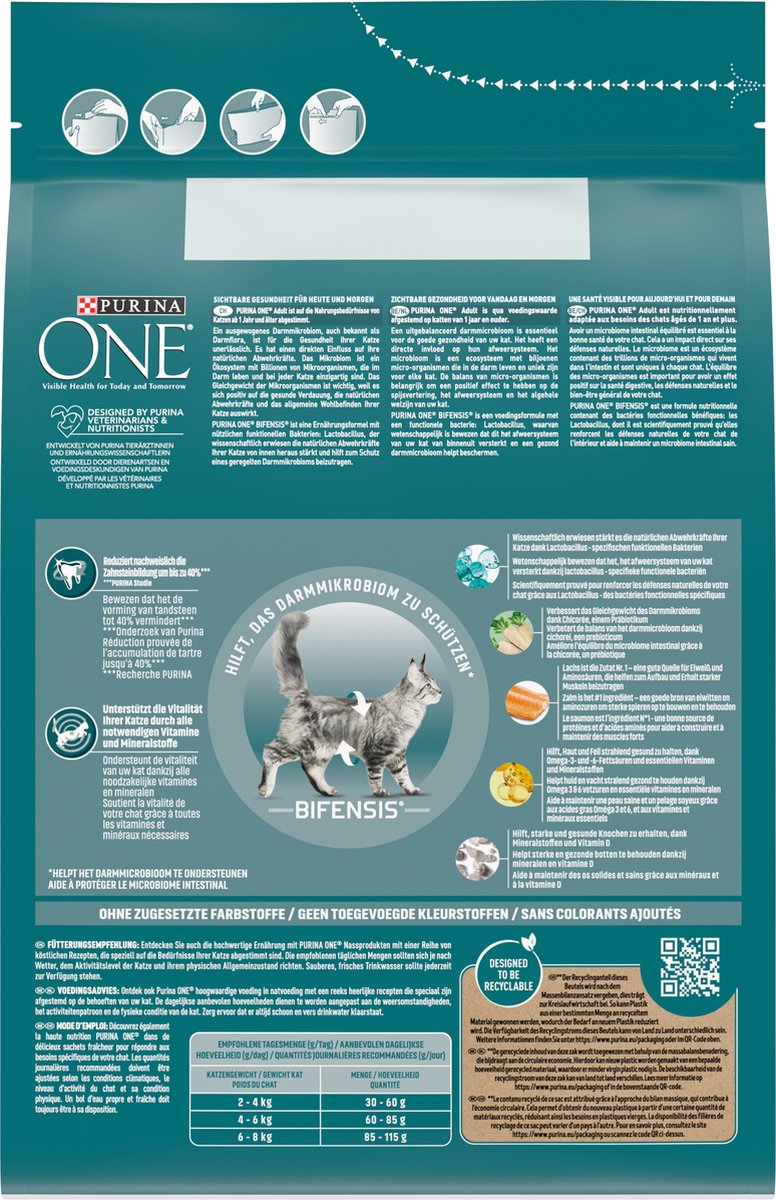 - Purina ONE® Adult is qua voedingswaarde afgestemd op katten van 1 jaar en ouder